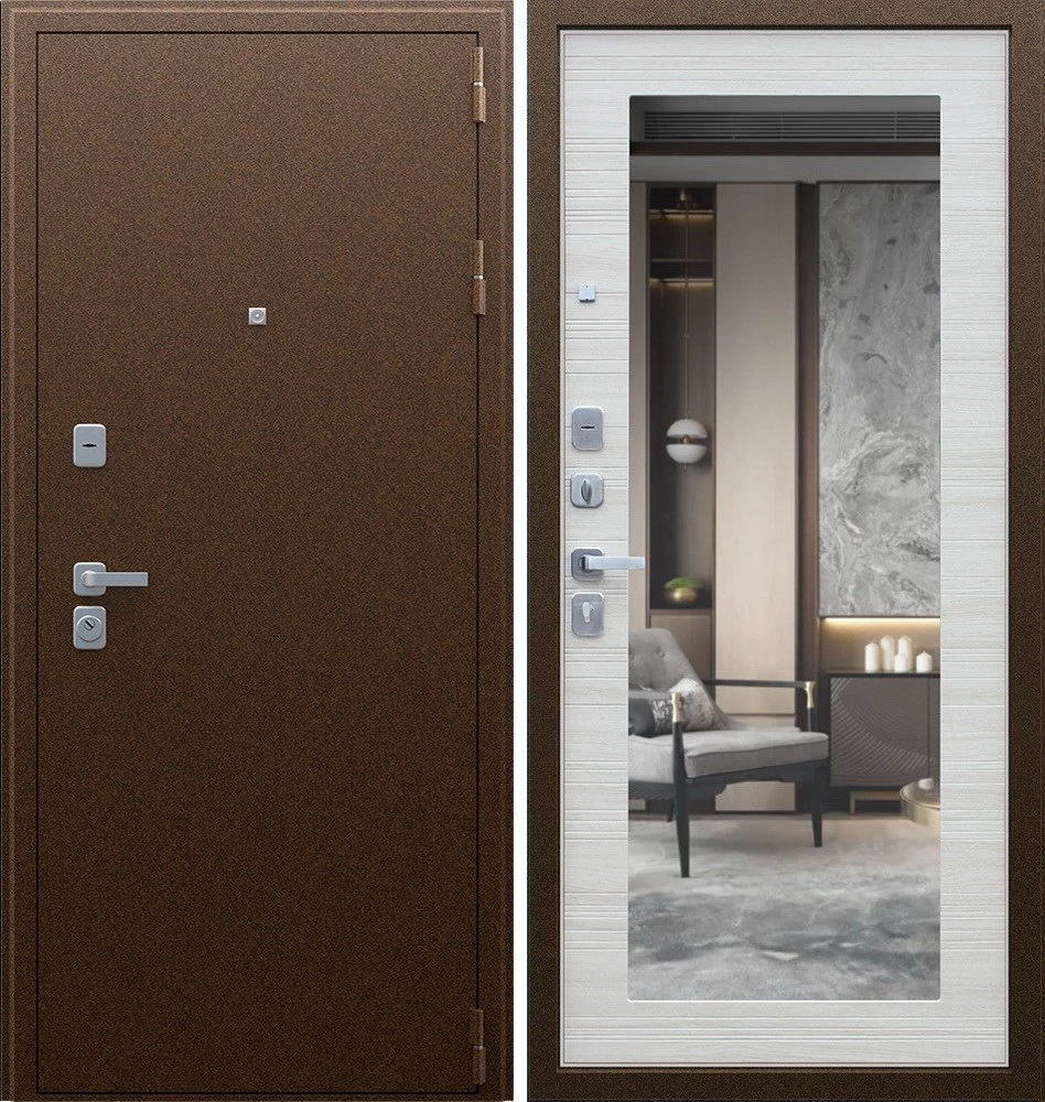 Надежная входная Дверь Спартак с зеркалом Акация Светлая Поперечная премиум класса по цене 32 000 руб. Большая толщина стали защитит от проникновения в ваш дом, квартиру или коттедж. Используется очень качественная фурнитура: замки, цилиндры, ручки, защелки. Покрытие и отделка двери изготовлено под внимательным контролем производителя. Дверь имеет долгий срок службы и гарантию.